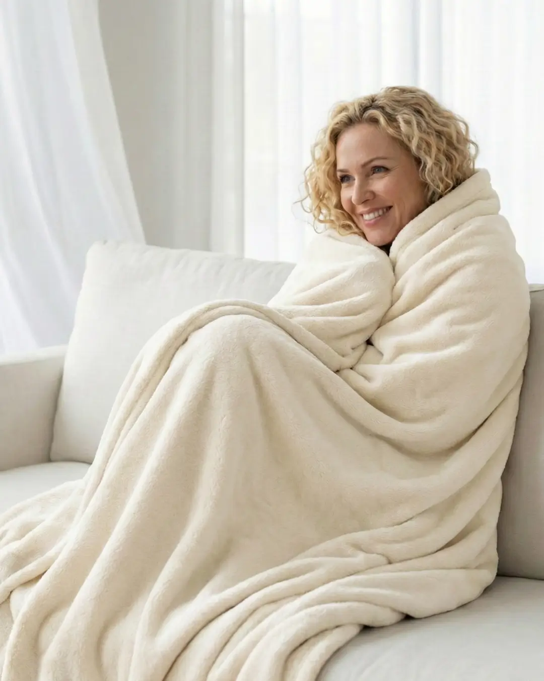 The Creamy Soft Blanket is made from plush, ultra-soft fabric in a creamy shade. Lightweight yet warm, it’s designed for cozy moments, from slow mornings on the couch to relaxing evenings in bed.