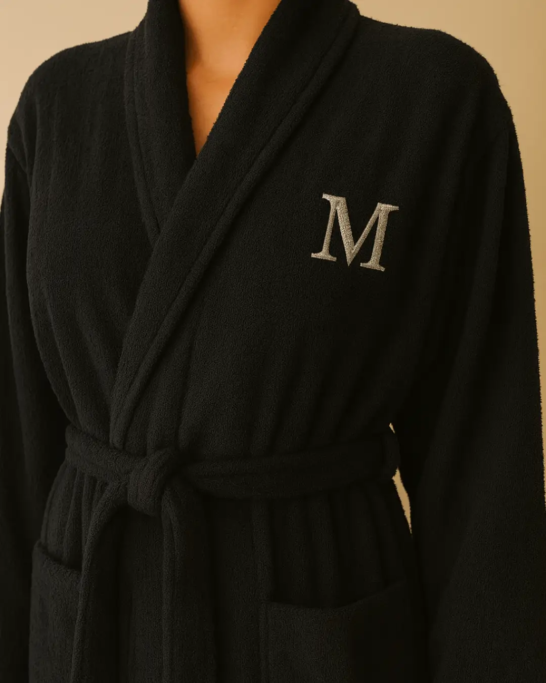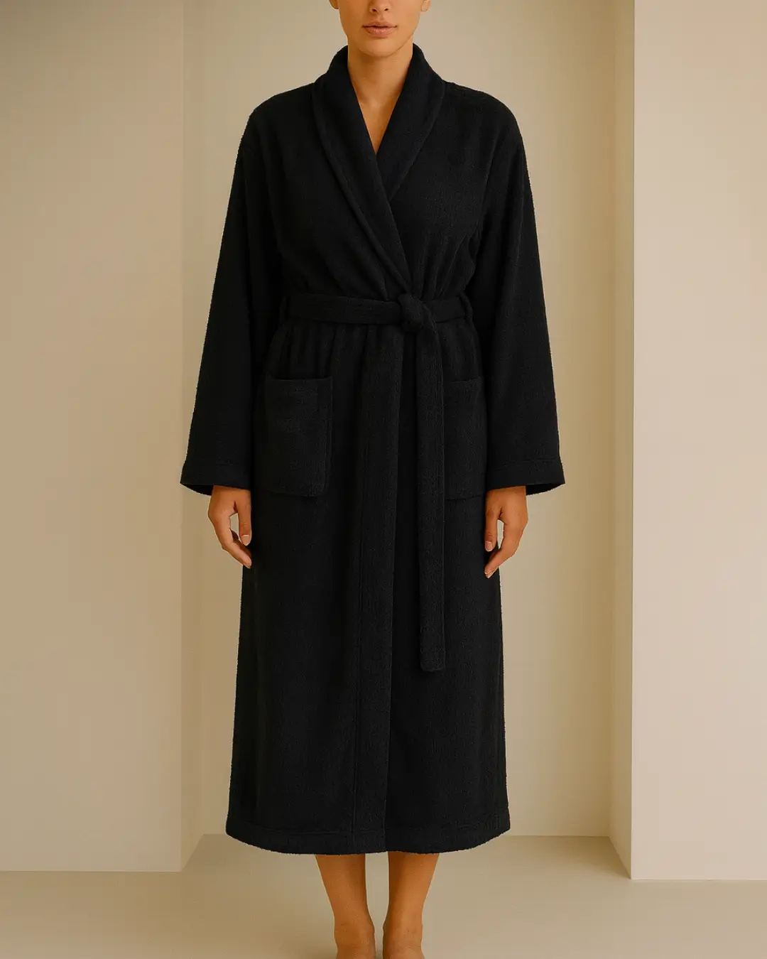 The Maison Luxe Bathrobe in Black is crafted from premium 100% cotton, offering a thick, plush feel designed for everyday comfort. Soft, breathable, and beautifully absorbent, it wraps you in warmth after showers.