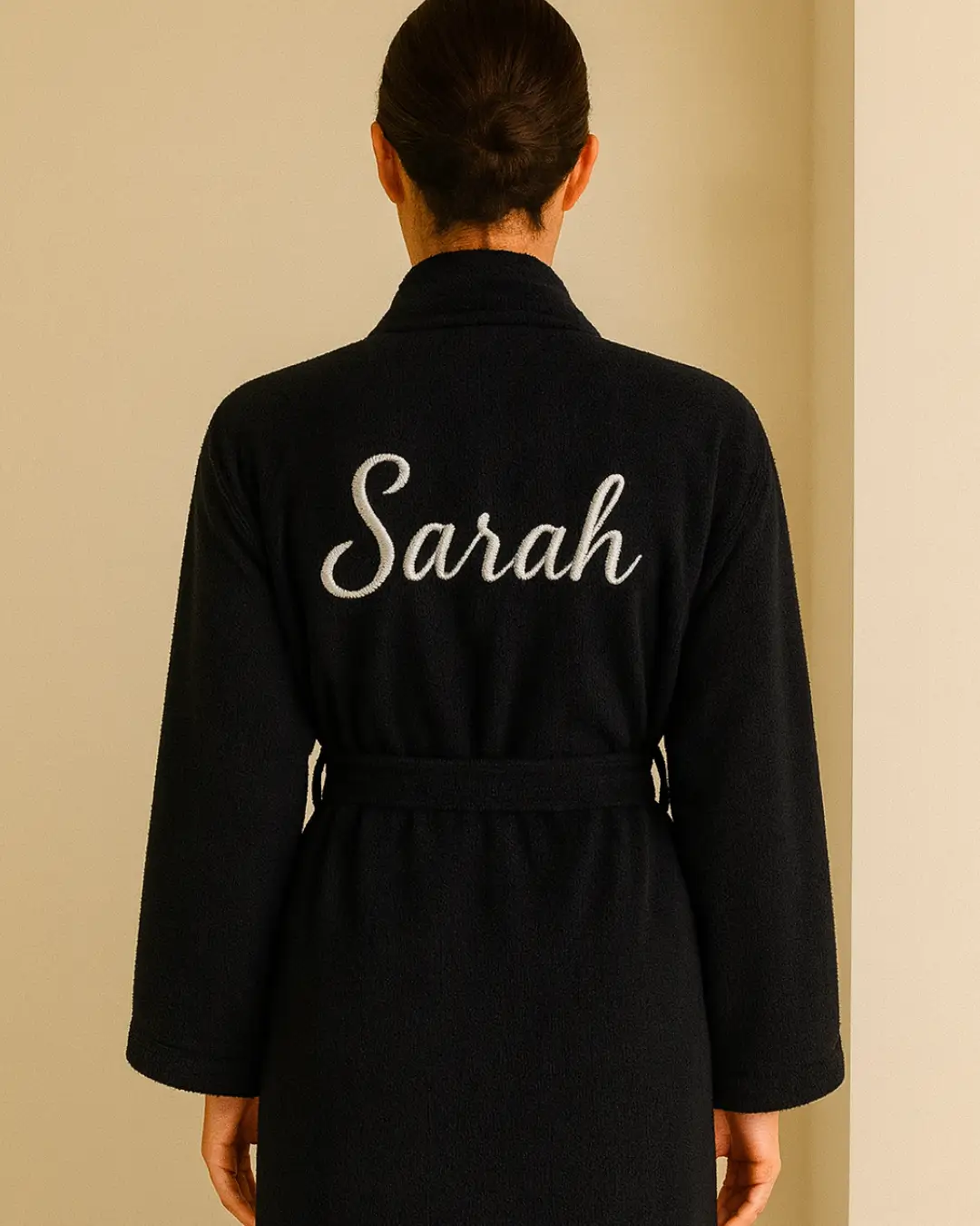 With its long, elegant silhouette and luxurious weight, this bathrobe brings a spa-like experience. It can also be personalized with custom embroidery, making it a thoughtful gift or a timeless self-care essential.