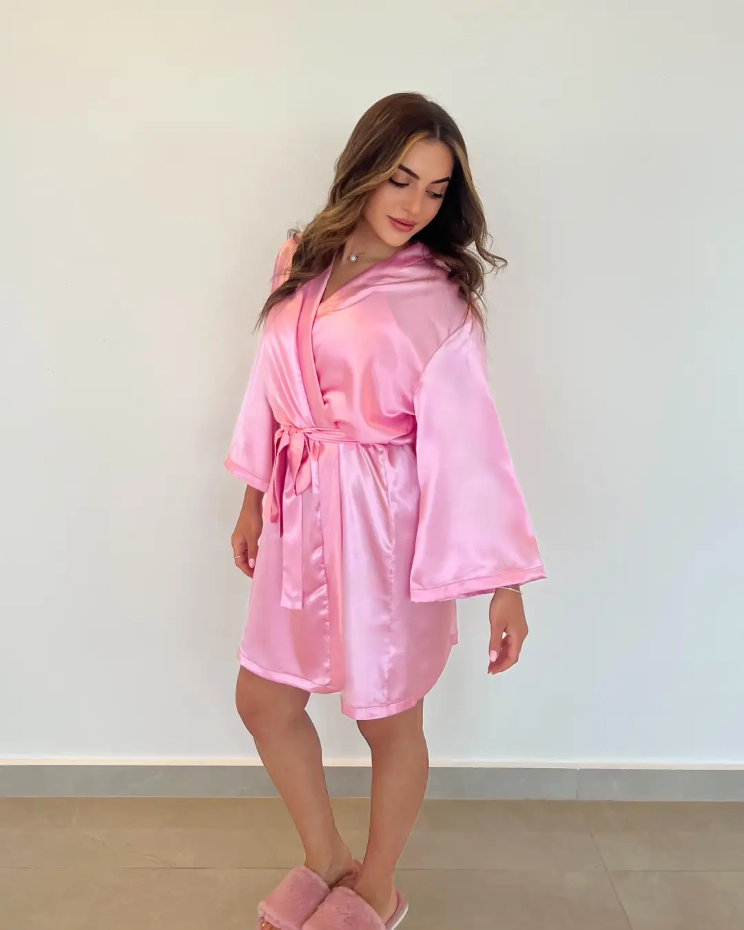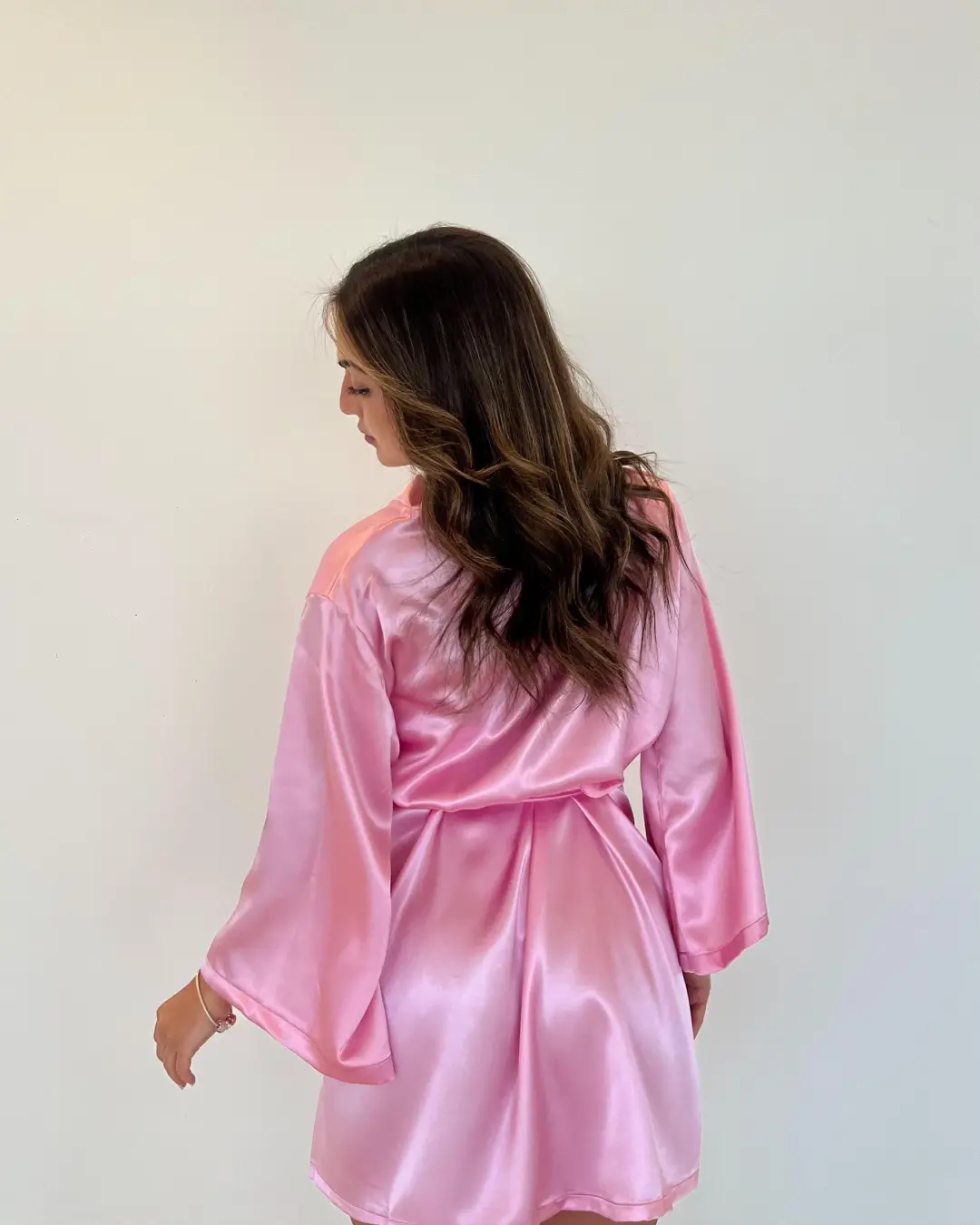 The Rose Bonbon Satin Robe is crafted from soft, silky satin in a bright rose-bonbon shade that adds a feminine touch to your loungewear collection. Perfect for bridesmaids, gifting, or relaxing mornings, this robe can be personalized with custom embroidery — a handmade piece designed to be cherished.