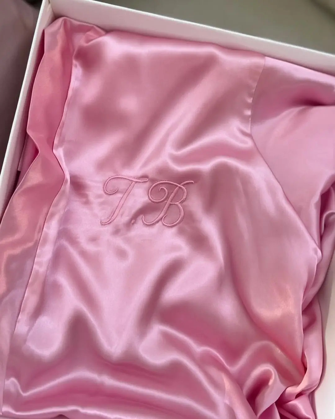 The Rose Bonbon Satin Robe is crafted from soft, silky satin in a bright rose-bonbon shade that adds a feminine touch to your loungewear collection. Perfect for bridesmaids, gifting, or relaxing mornings, this robe can be personalised with custom embroidery — a handmade piece designed to be cherished.