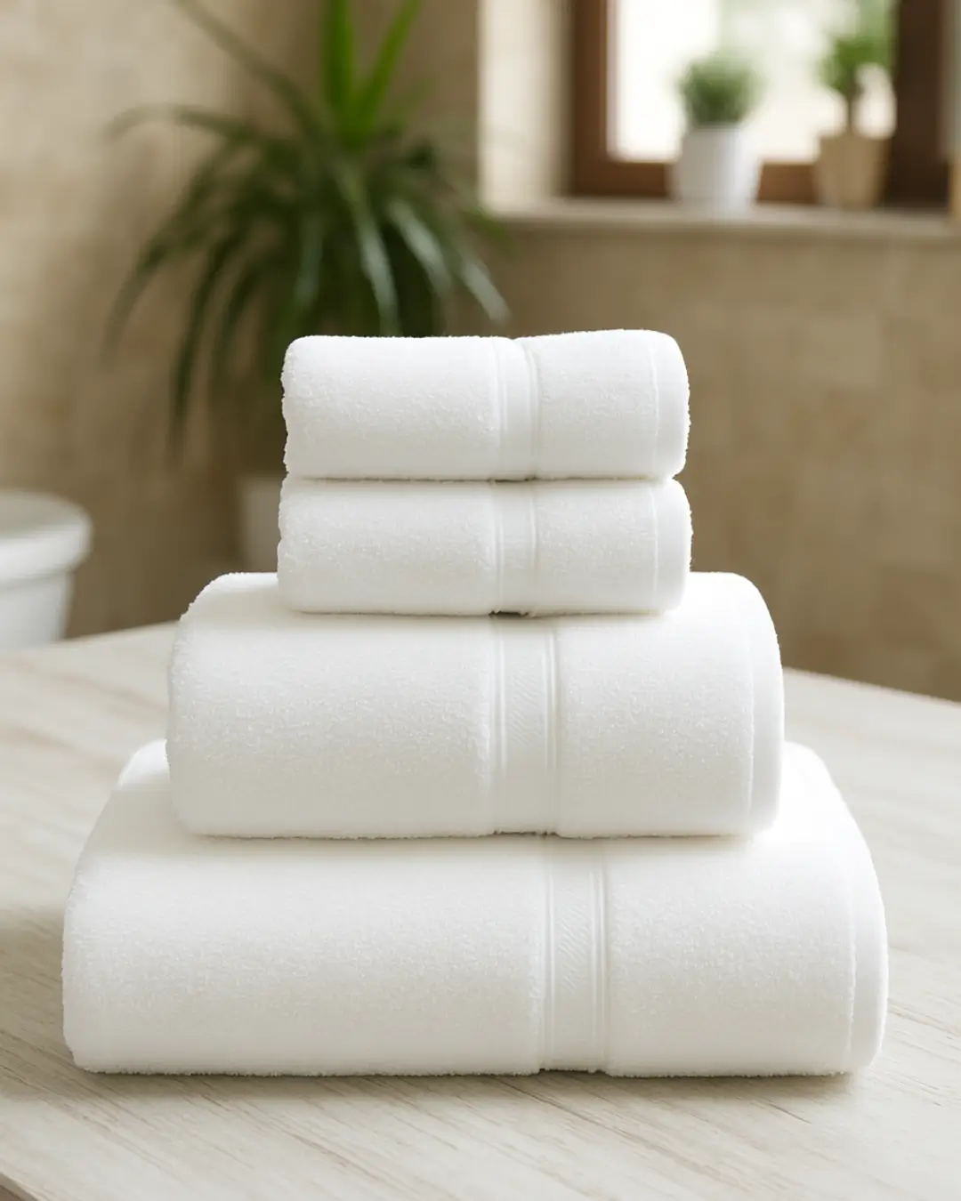 The Cotton Towel in white is crafted from 100% premium cotton with a luxurious weight (600 g/m²) , offering softness, absorbency, and comfort.