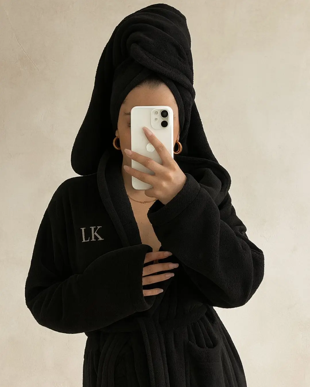 Perfect for everyday use, it can be personalized with custom embroidery and beautifully matched with our Maison Luxe Bathrobe in black for a spa-like experience at home.